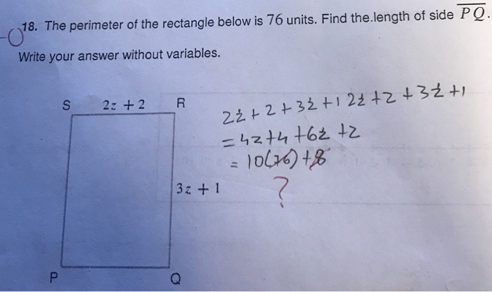 Solved 18 The Perimeter Of The Rectangle Below Is 76 Uni Chegg Com